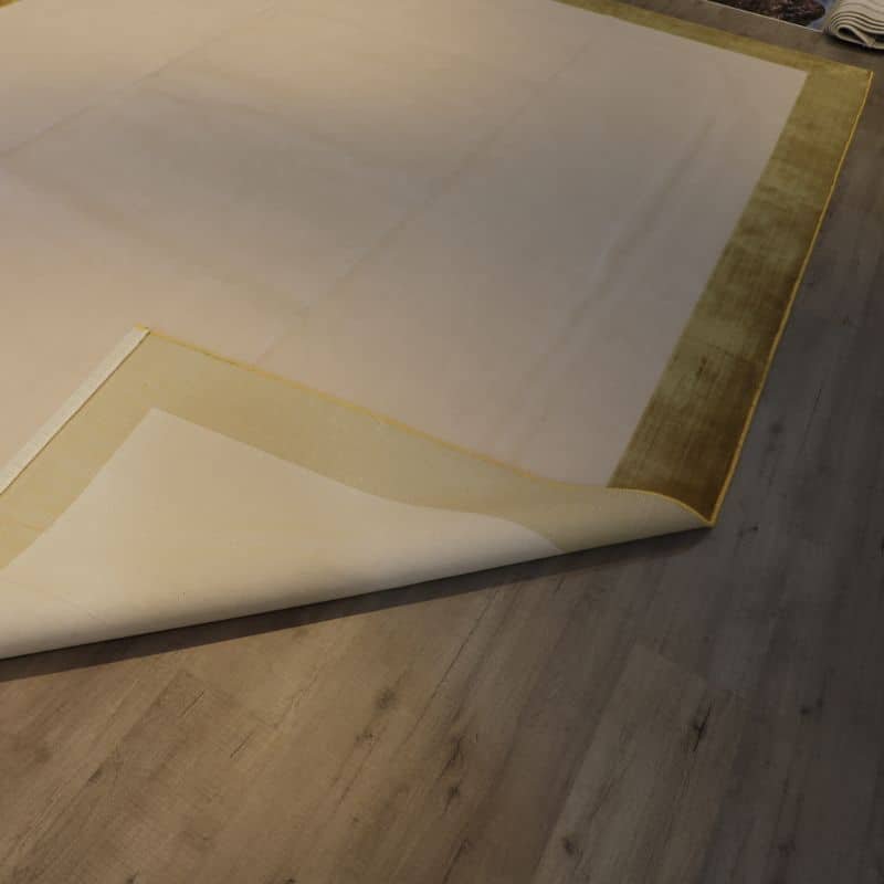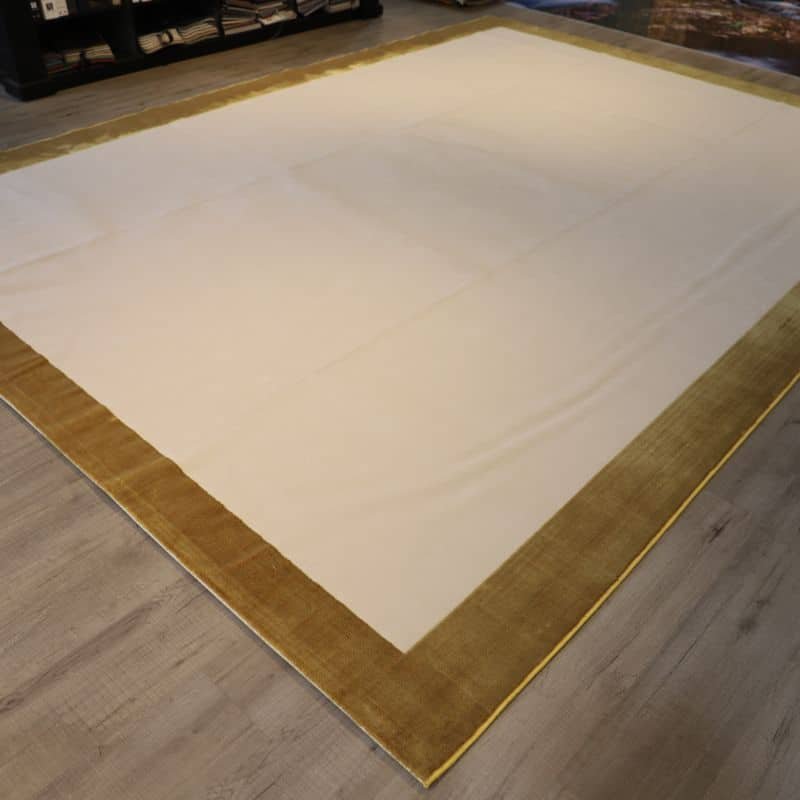A Cream Area Rug Brown Border And Carved Pattern