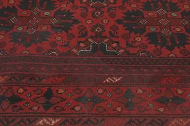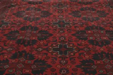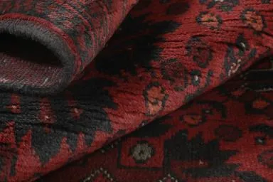 Crafted from high-grade wool sourced from local Afghan sheep, the rug boasts a natural sheen, remarkable durability, and a soft, tactile feel underfoot. The deep red base contrasted by dark blue or black motifs exudes timeless elegance—perfect for enhancing both traditional and modern interiors alike.