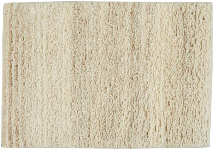 The AGADIR CK930 Beige Rug brings a warm, plush feel to any room with its blend of creamy white, French vanilla, coffee, and mocha tones. Its textured surface creates depth while keeping the look soft and modern. Crafted by hand, each rug carries unique character and natural variation, making every piece one of a kind. The 61% wool and 39% rayon composition gives the rug both durability and a refined sheen. With a 0.87-inch shag and ribbed pile, it offers comfortable cushioning underfoot. This design suits contemporary homes, hospitality spaces, and rooms that need a cozy yet sophisticated accent. The rug performs best in areas with moderate foot traffic and may show light shedding typical of wool blends. Maintenance is simple with regular vacuuming and prompt spot cleaning.