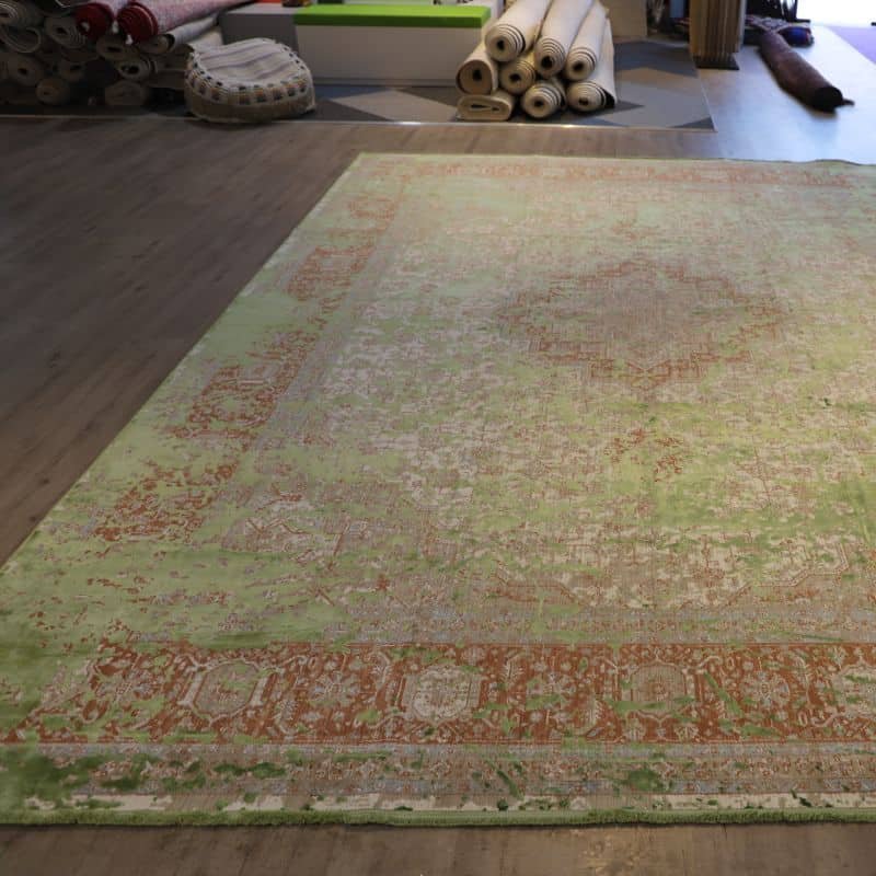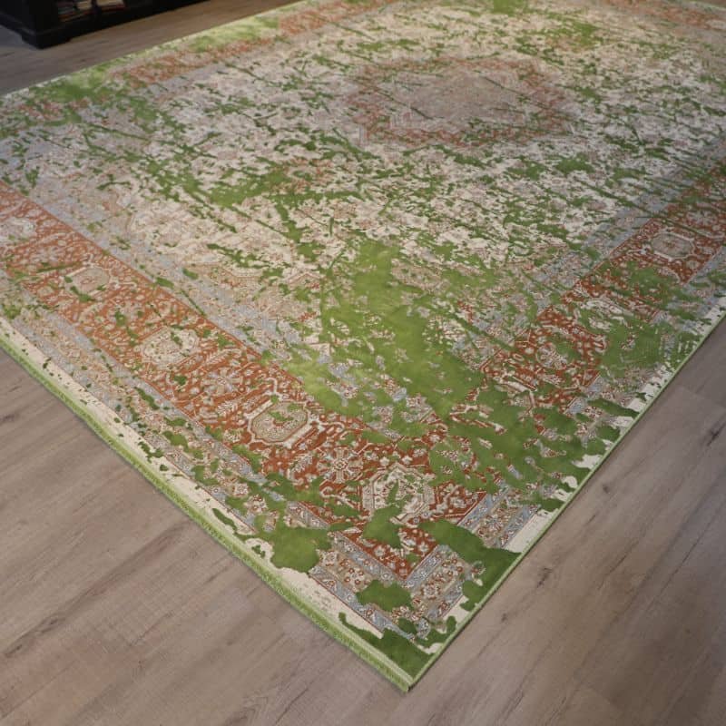 Introducing Handi Craft Eclectic Historia Rug, part of the Historia collection. Made of durable acrylic and machine-woven with 1200 reeds for a consistent finish. Its calming green hue complements any room. Perfect for a cozy living room, stylish bedroom, or elegant dining room. Add a touch of natural charm to your home decor with this versatile and sophisticated rug.