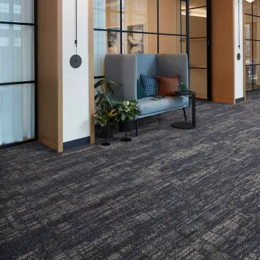 The Harbour Reflections Navy carpet brings both style and performance to large, high-traffic spaces. Its tufted textured loop construction provides durability and a refined appearance. Made with 100% recycled nylon by Aquafil, it combines sustainability with strength. The 100% solution-dyed yarn ensures lasting color and resistance to fading. Integrated Protekt²® soil and stain protection keeps the carpet looking fresh even in busy areas. Intersept® preservative protection adds long-term durability against wear and environmental factors. Its design works as a foundation for seamless interiors or paired with other patterns like Reflective Sky™ to define flowing zones. Perfect for offices, public spaces, and contemporary homes seeking practical elegance.