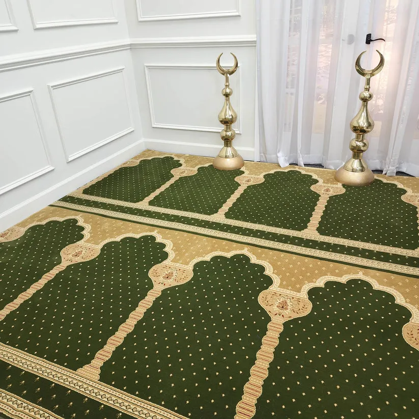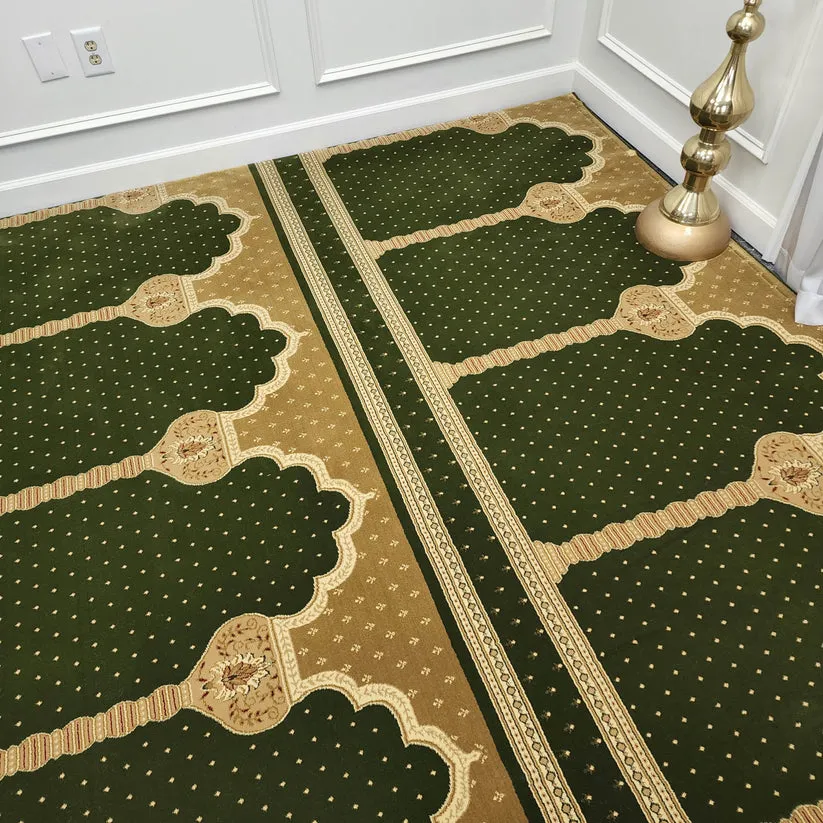 Luxury Olive Green with Gold Mosque & Masjid Carpet