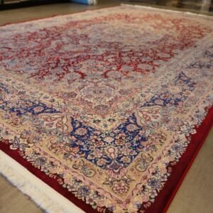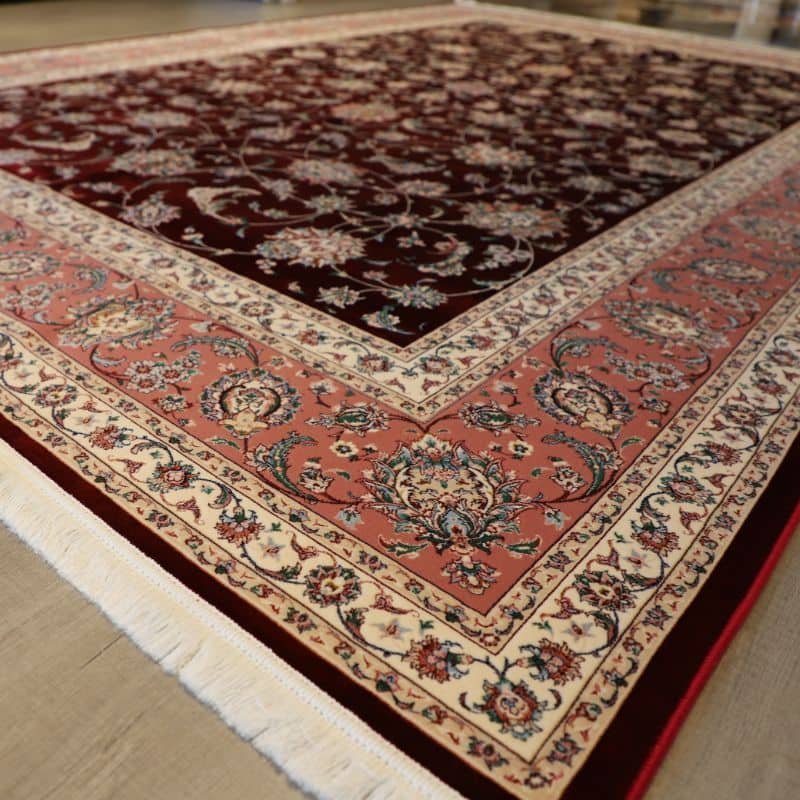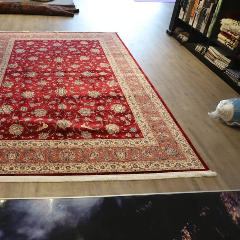 Set the perfect elegance of your interior by ordering the most luxurious Tarbiz red rugs. These floral printed rugs will ensure maximum comfort, style, and functionality. These rugs feature the exclusive style of lines, imitating the appearance of match sticks.