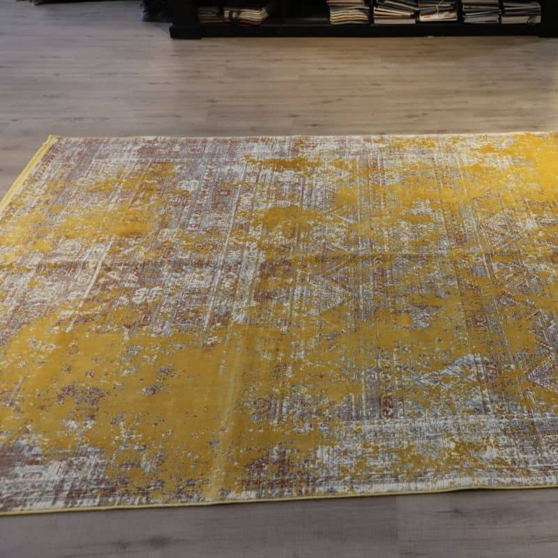 Introducing you to the modern variety of rugs with a mustard yellow theme that serves as the center of focus in any space. With a vibrant appearance, intricate patterns, and a contemporary touch, it will be the most delightful addition. It is a Persian handcrafted piece that features a gold color appearance. It is made from acrylic bamboo with a low pile height that contributes to functionality and is totally hypoallergenic for every space’s settings.