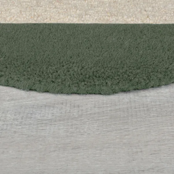 Round rugs with hand-carved scalloped edges feature 100% wool for natural softness and insulation. Unique design with contrasting frame enhances living rooms, dining areas, and bedrooms while providing durable, stylish comfort.