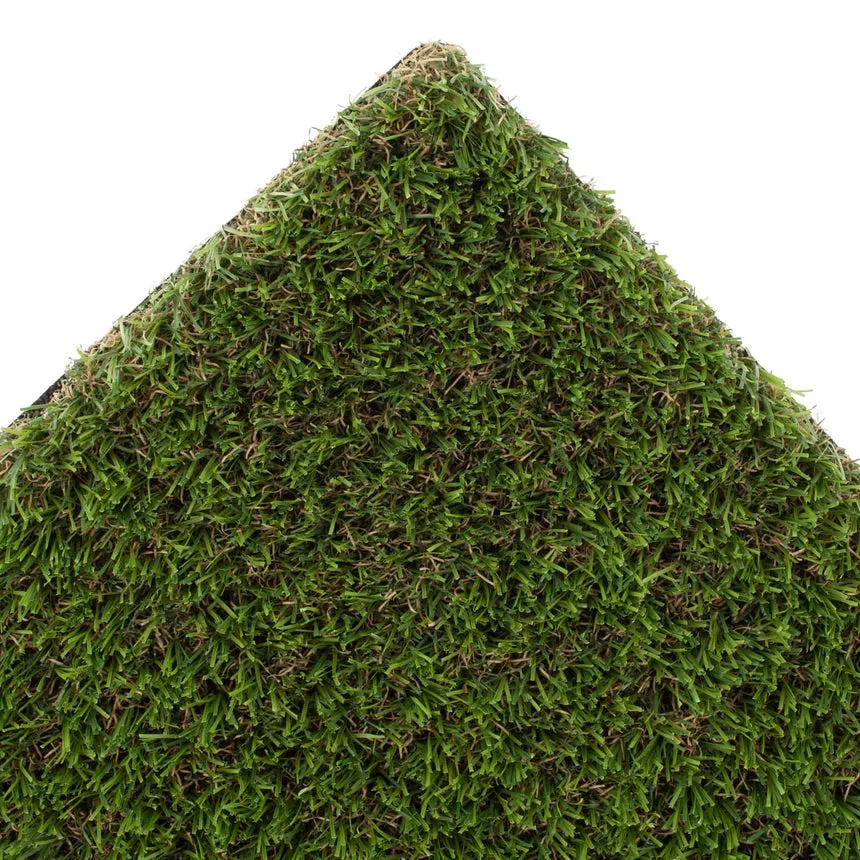 The Shenwich 30mm Artificial Grass provides a realistic, soft, and durable turf solution for any outdoor or indoor space. Its 28 mm C-shaped fibres create resilience while offering a natural, lush feel underfoot. The shades of green, brown, and yellow replicate real grass both up close and from a distance. A latex backing with drainage holes ensures water passes through easily, keeping surfaces dry and clean. This artificial grass can be installed on soil, concrete, decking, or even balconies, making it highly versatile. Made from polypropylene and polyethylene, it is strong, low-maintenance, and resistant to wear from domestic use. The material is lead and cadmium free, making it safe for children and pets. Enjoy a green, soft lawn all year round with minimal upkeep.